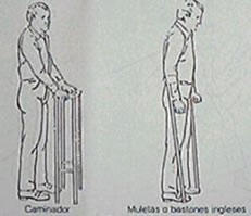 finalmente, los bastones o las muletas. Si es posible use la baranda con la mano que le queda libre.