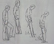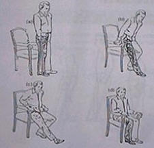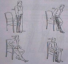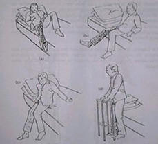 utilizando sus muletas para ayudar a su pierna operada. La secuencia es como sigue: